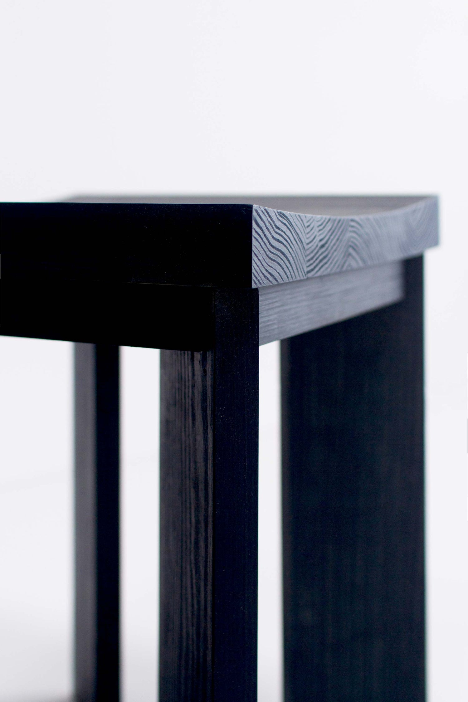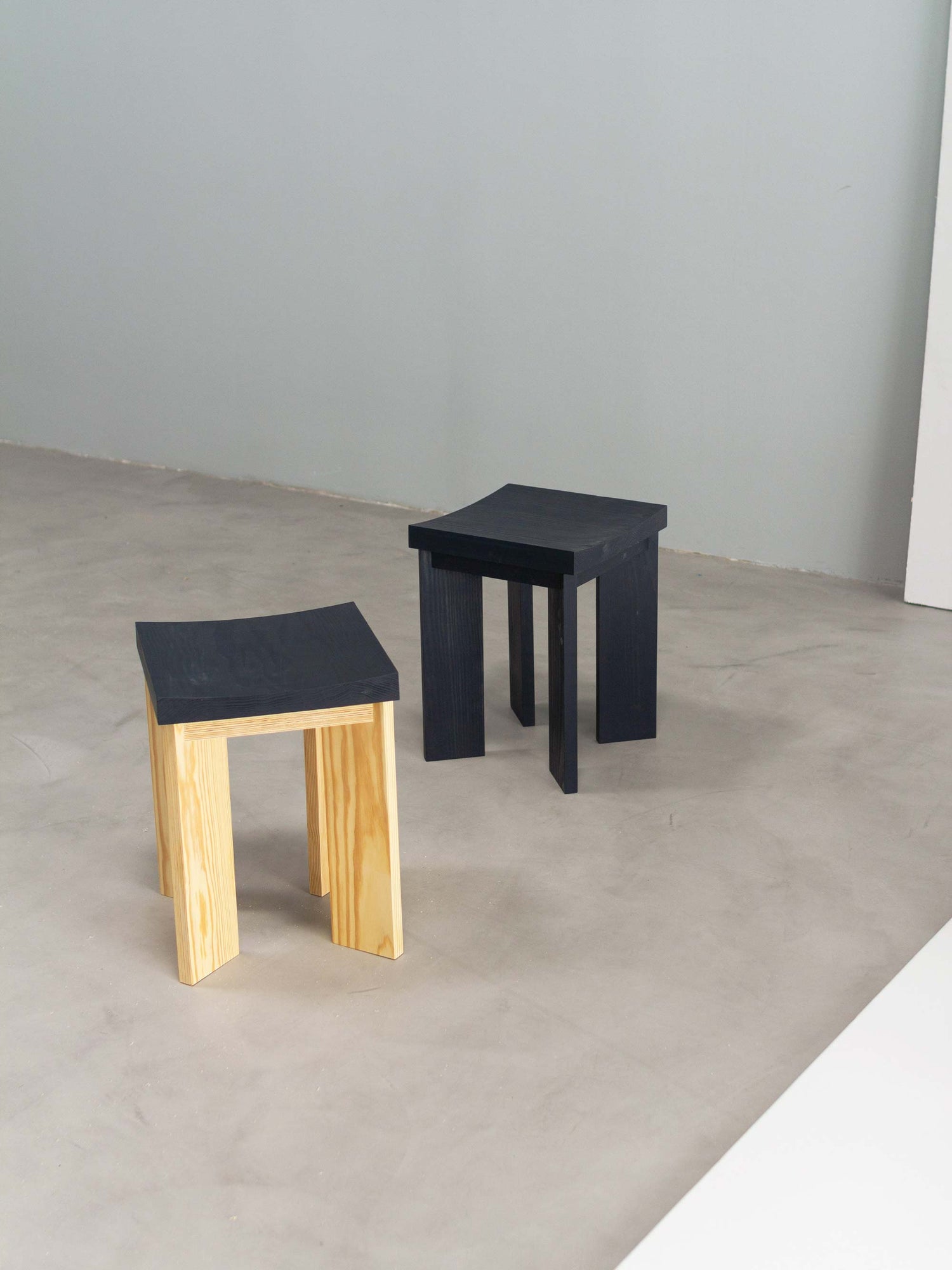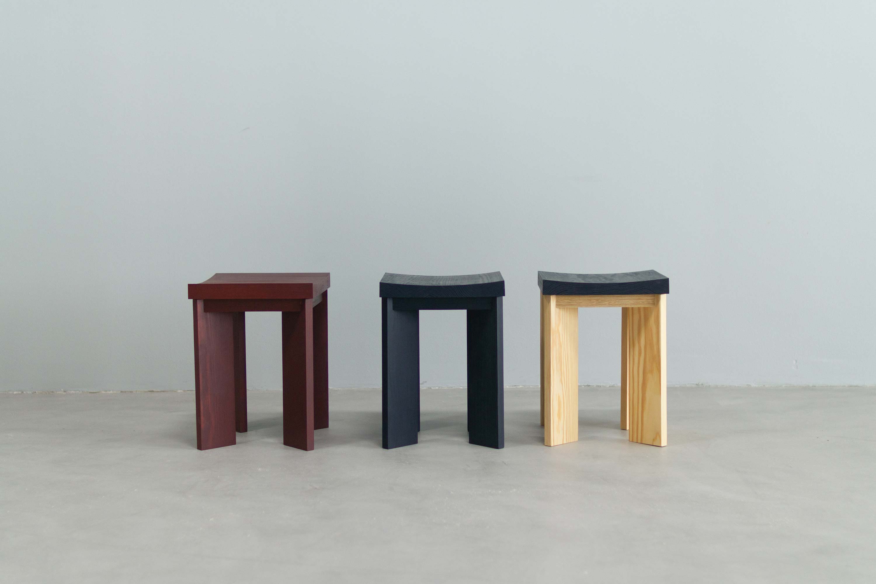 The stools monochromatic variation embraces the boldness of the linseed oil finish.